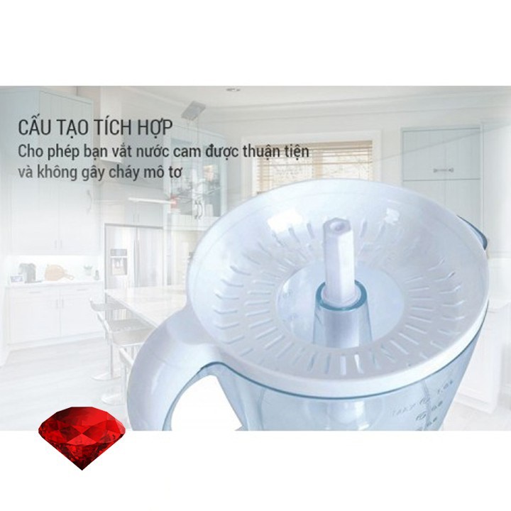 Cách sử dụng đơn giản, nhẹ nhàng, bạn chỉ cần ấn nhẹ miếng trái cây đặt trên nón ép là đã khởi động cho thiết bị thực hiện công việc ép nước cam. Sản phẩm sở hữu thiết kế nhỏ gọn với màu sắc trang nhã, không chỉ mang đến cho gia đình bạn những ly nước trái cây thơm ngon, bổ dưỡng mà còn góp phần tô điểm cho không gian bếp thêm tiện nghi, hiện đại.