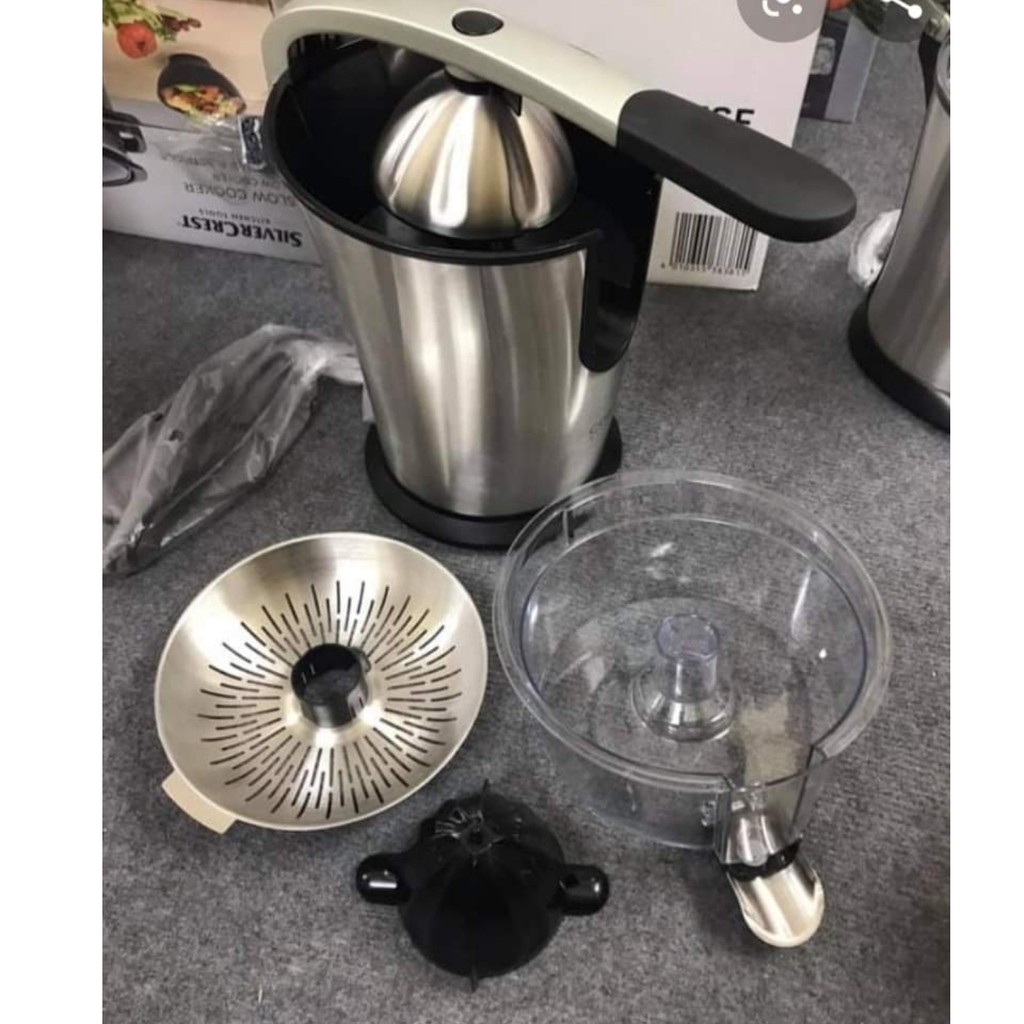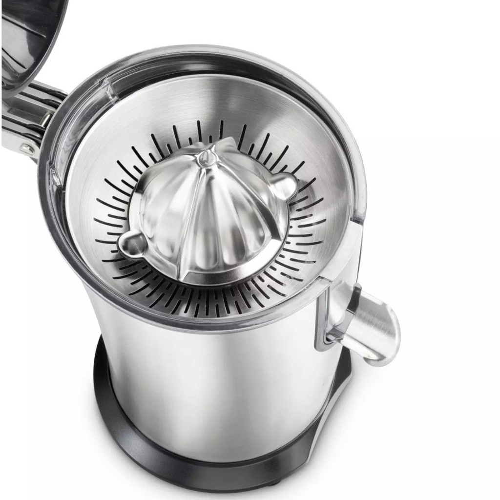 - Thân bằng thép không gỉ sang trọng, nắp bằng nhựa trong suốt, khay vắt bằng inox… Máy tự động hoạt động/ dừng, chân đế chống trơn trượt, cần gạt đòn bảy với tay cầm mềm.