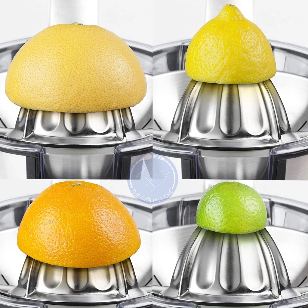 - Công suất lớn nhất 160w trong các dòng vắt cam hiện nay. Đường kính nón chụp to cùng với đường kính khay vắt lên đến 20cm thoải mái ép được cả trái bưởi hoặc cam to.