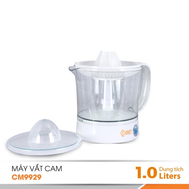 - Máy vắt cam COMET - CM9929 thiết kế tiện lợi, dễ sử dụng và nhưng không kém phần sang trọng, được chế tạo bằng loại nhựa AS trong suốt cao cấp an toàn khi tiếp xúc với thực phẩm, giúp bạn dễ dàng quan sát lượng nước trái cây bên trong khi đang vắt hoặc khi sử dụng.