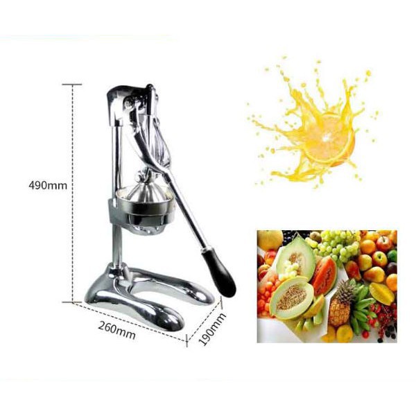 MÁY VẮT CAM INOX+ Máy ép hoa quả bằng tay được làm bằng inox rất dầy và nặng. Hình thức đẹp sang trọng thích hợp cho nhà hàng, quán bar, kinh doanh lưu động và gia đình sử dụng.