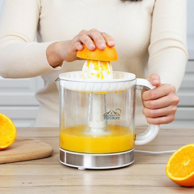 Cách sử dụng đơn giản, nhẹ nhàng, bạn chỉ cần ấn nhẹ miếng trái cây đặt trên nón ép là đã khởi động cho thiết bị thực hiện công việc ép nước cam. Sản phẩm sở hữu thiết kế nhỏ gọn với màu sắc trang nhã, không chỉ mang đến cho gia đình bạn những ly nước trái cây thơm ngon, bổ dưỡng mà còn góp phần tô điểm cho không gian bếp thêm tiện nghi, hiện đại.