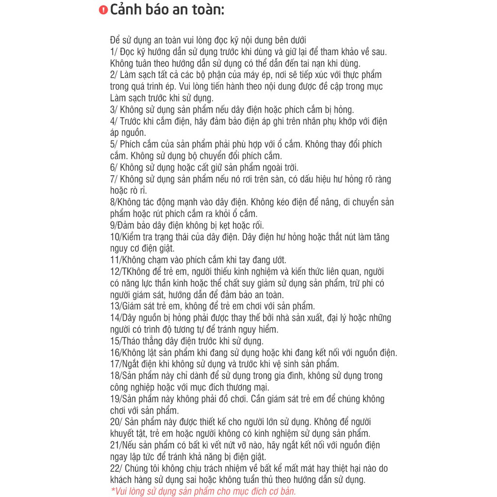 Đặc biệt, sản phẩm trang bị bình đựng trong suốt giúp bạn quan sát được lượng ép bên trong. Nắp đậy bảo vệ bên ngoài và nắp đậy đầu vắt bên trong giúp bảo vệ kín đáo, ngăn ngừa bụi bẩn, vi khuẩn xâm nhập hiệu quả. Quai cầm dày chắc kết hợp cùng miệng rót trên bình đựng giúp bạn thực hiện các thao tác cầm nắm, rót nước ép dễ dàng.
