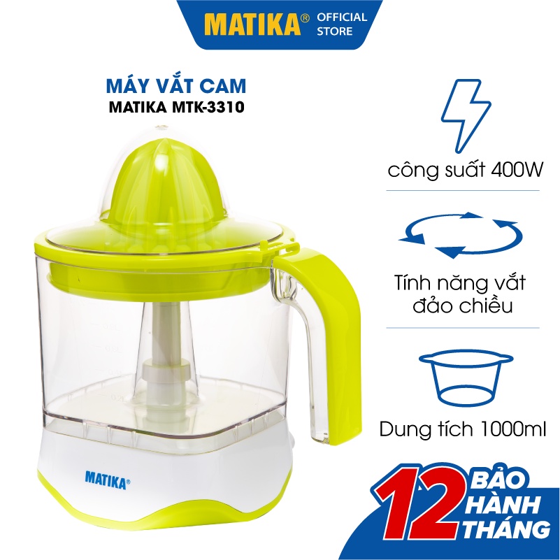 Thiết Bị Điện Gia Dụng > Đồ gia dụng nhà bếp > Máy ép, Xay sinh tố & Máy làm sữa đậu nành || [Mã ELHA22 giảm 6% đơn 300K] Máy Vắt Cam MATIKA Dung Tích 1L MTK-3310Còn hàng