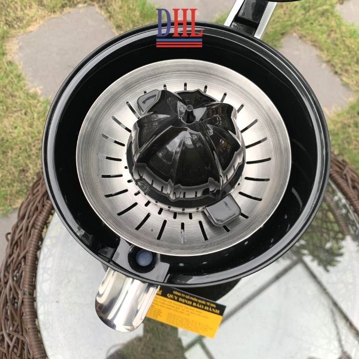 - Thiết kế cần ép có lõm cầu bán nguyệt giúp ôm trọn 1/2 trái cam khi ép