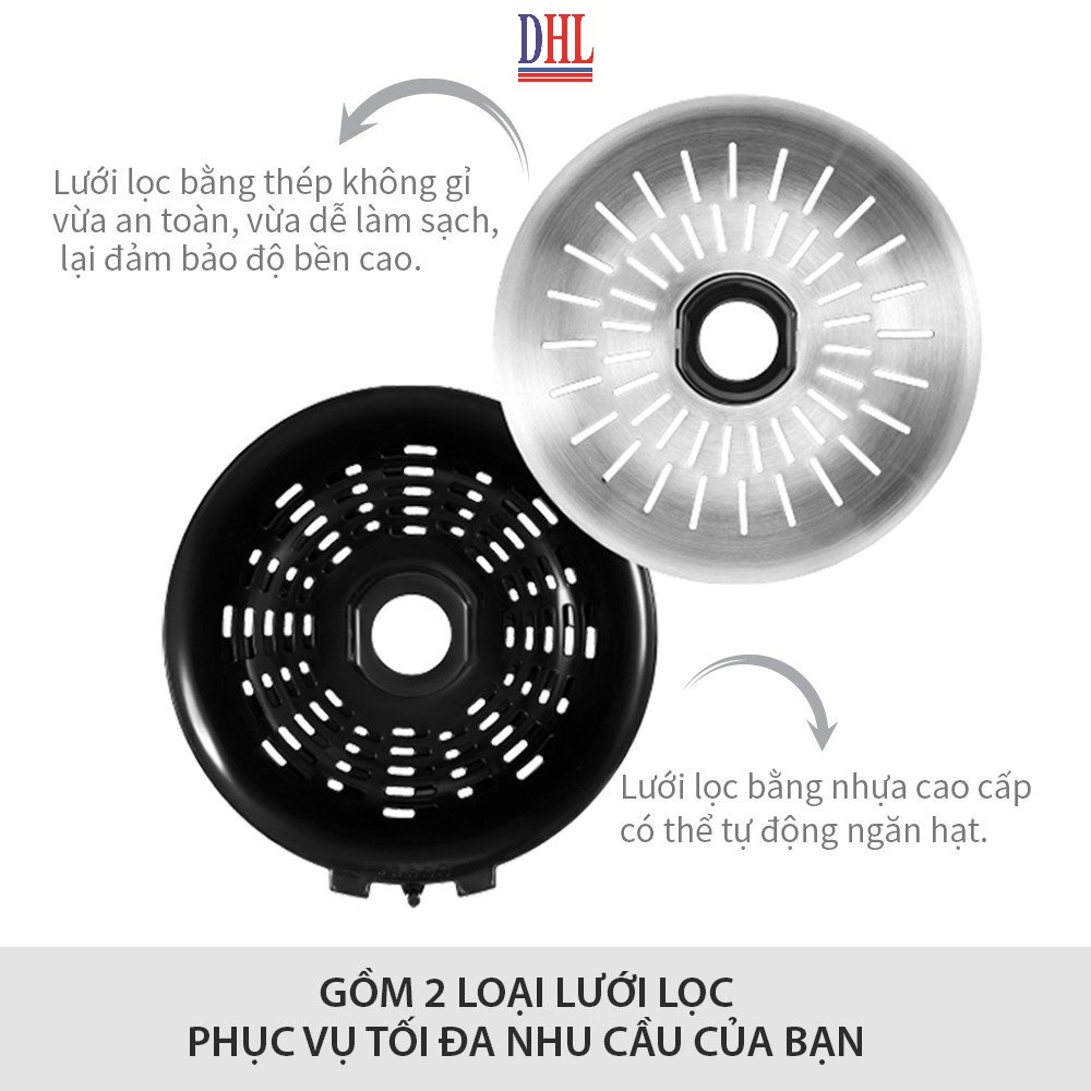 - Thiết kế cần ép có lõm cầu bán nguyệt giúp ôm trọn 1/2 trái cam khi ép