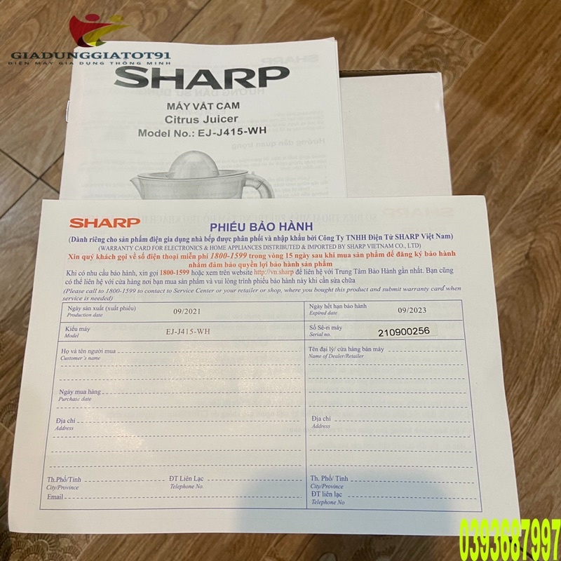 MÁY VẮT CAM SHARP DUNG TÍCH 1,5L CÔNG SUẤT 40w BẢO HÀNH 12 THÁNG