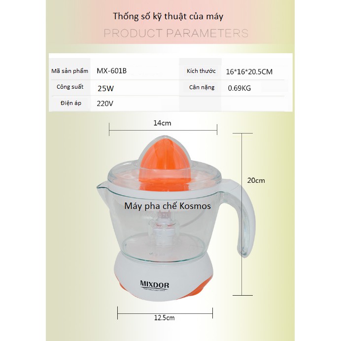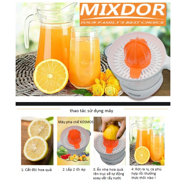 Việc sử dụng nước ép cam, chanh, bưởi hàng ngày nhanh chóng và tiện lợi hơn bao giờ hết với máy vắt camMixdor MX -601B !