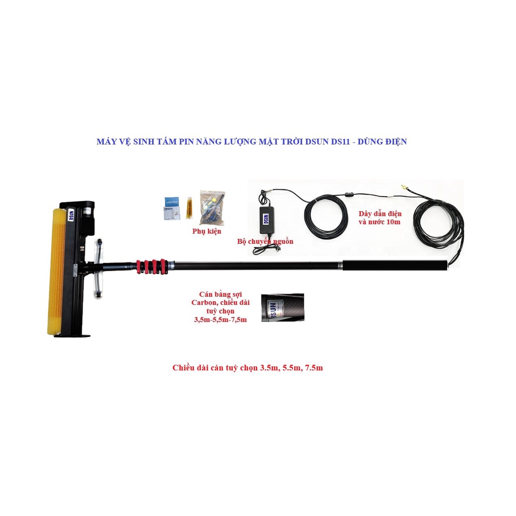 Giới thiệu Máy vệ sinh Pin năng lượng mặt trời DSUN DS11, Chổi vệ sinh pin mặt trời | Chổi lau pin mặt trời phiên bản dùng Điện