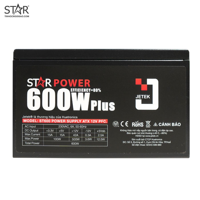 Máy tính & Laptop > Linh Kiện Máy Tính > Nguồn Máy Tính || Nguồn máy vi tính Jetek STAR Power ST600 600W Plus + Dây NguồnCòn hàng