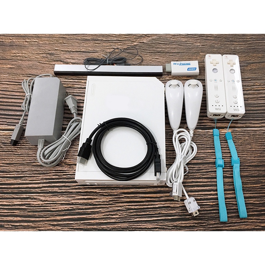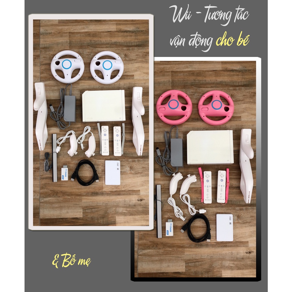 Bộ máy Wii cho cả nhà chơi tương tác. Bộ kèm HDD 320GB cop full games hay nhất Wii, thể thao tương tác vận động.Bộ gồm: Thân máy hách sẵn, nguồn, sensor, 2 remote, 2 nunchuck, 2 vô lăng, 2 zapper, ổ cứng 320GB cop sẵn game chỉ việc cắm Tivi là sử dụng.