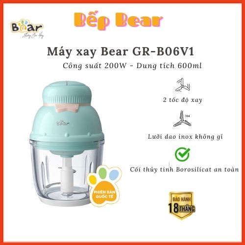 Giới thiệu Máy Xay Ăn Dặm, Máy xay Mini 0.6L Bear GR-B06V1, Máy Xay Thịt, Cối Thủy Tinh Chịu Nhiệt, Chính Hãng Bảo Hành 18 Tháng