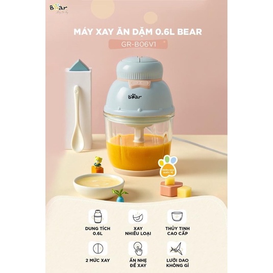 Thiết Bị Điện Gia Dụng > Đồ gia dụng nhà bếp > Máy chế biến thực phẩm & Xay thịt || Máy xay ăn dặm mini 0.6L Bear QSJ-C02K1 (GR-B06V1)Còn hàng