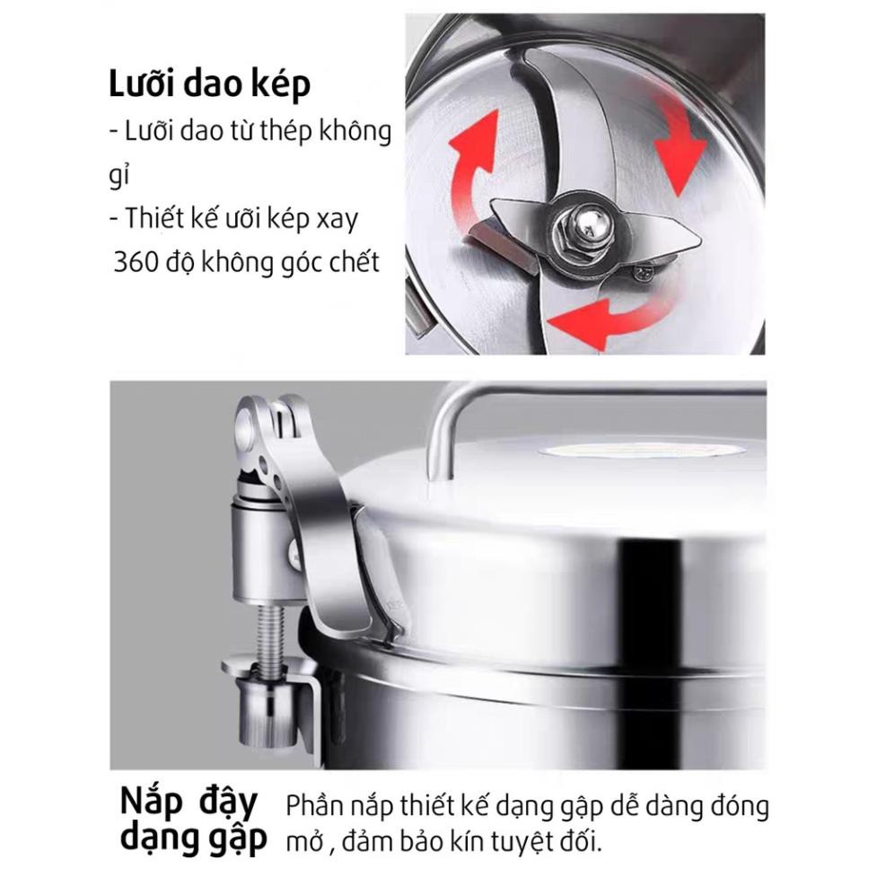 Máy xay khô được làm hoàn toàn bằng inox chất lượng cao, không bị gỉ sét, luôn luôn sáng đẹp và đảm bảo vệ sinh chế biến thực phẩm.