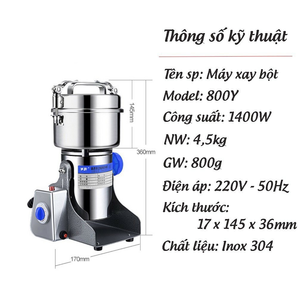 - Máy xay bột khô mịn công suất lớn, tốc độ quay của motor là 2500 vòng/phút NHANH HƠN GẤP 3 LẦN CÁC DÒNG MÁY KHÁC
