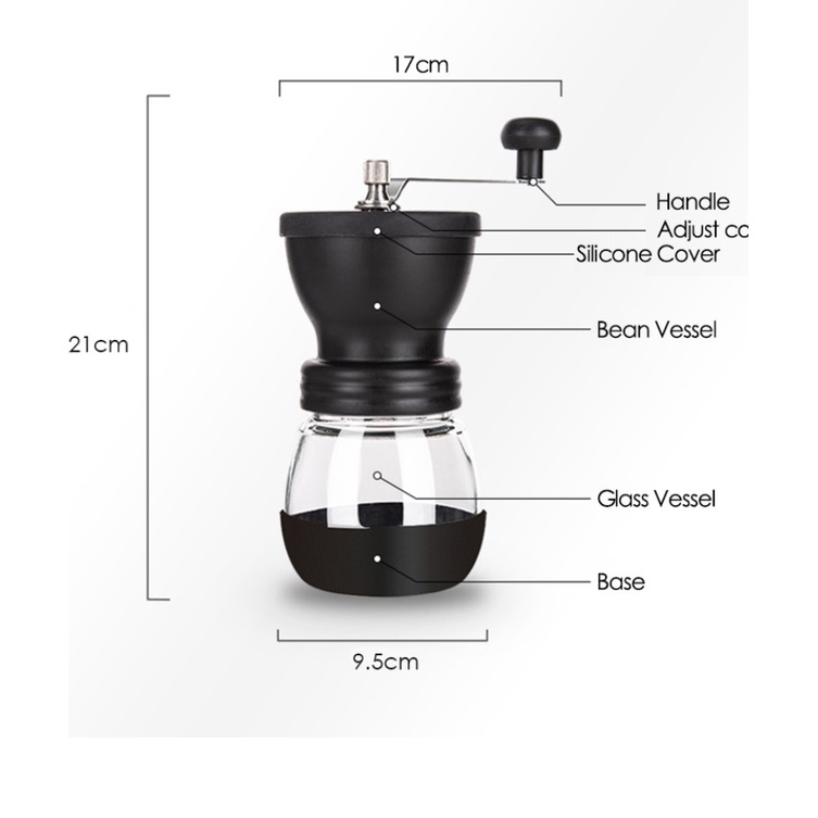 Máy Xay Cà Phê cầm tay hàng + Tặng 1 Bình Thủy TinhĐộ dày có thể được kiểm soát bằng cách điều chỉnh bánh răng, sách hướng dẫn có hướng dẫn chi tiết.