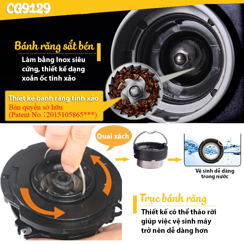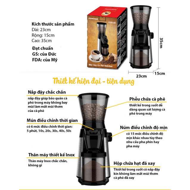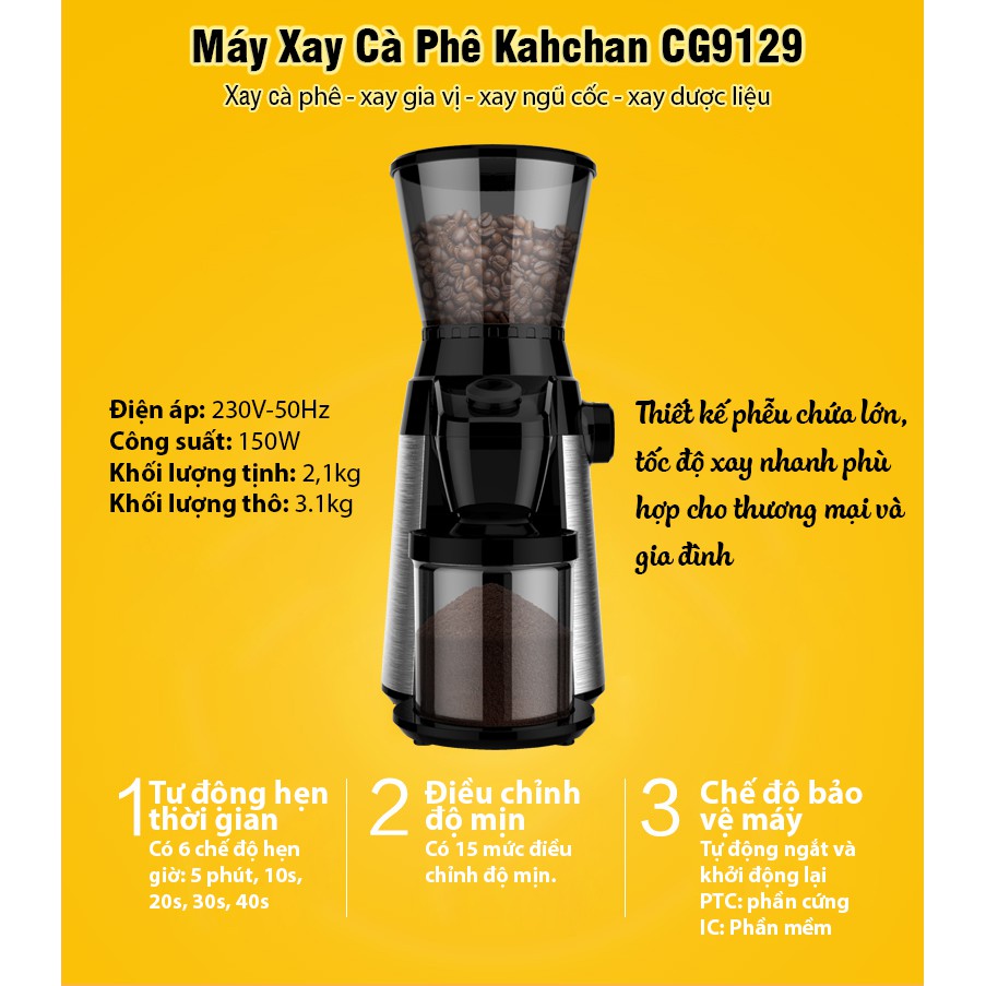 Thiết Bị Điện Gia Dụng > Đồ gia dụng nhà bếp > Máy pha cà phê & Phụ kiện || Máy xay cà phê cho quán, gia đình Kahchan CG9129 chính hãng, có thể xay ngũ cốc, xay thuốcCòn hàng