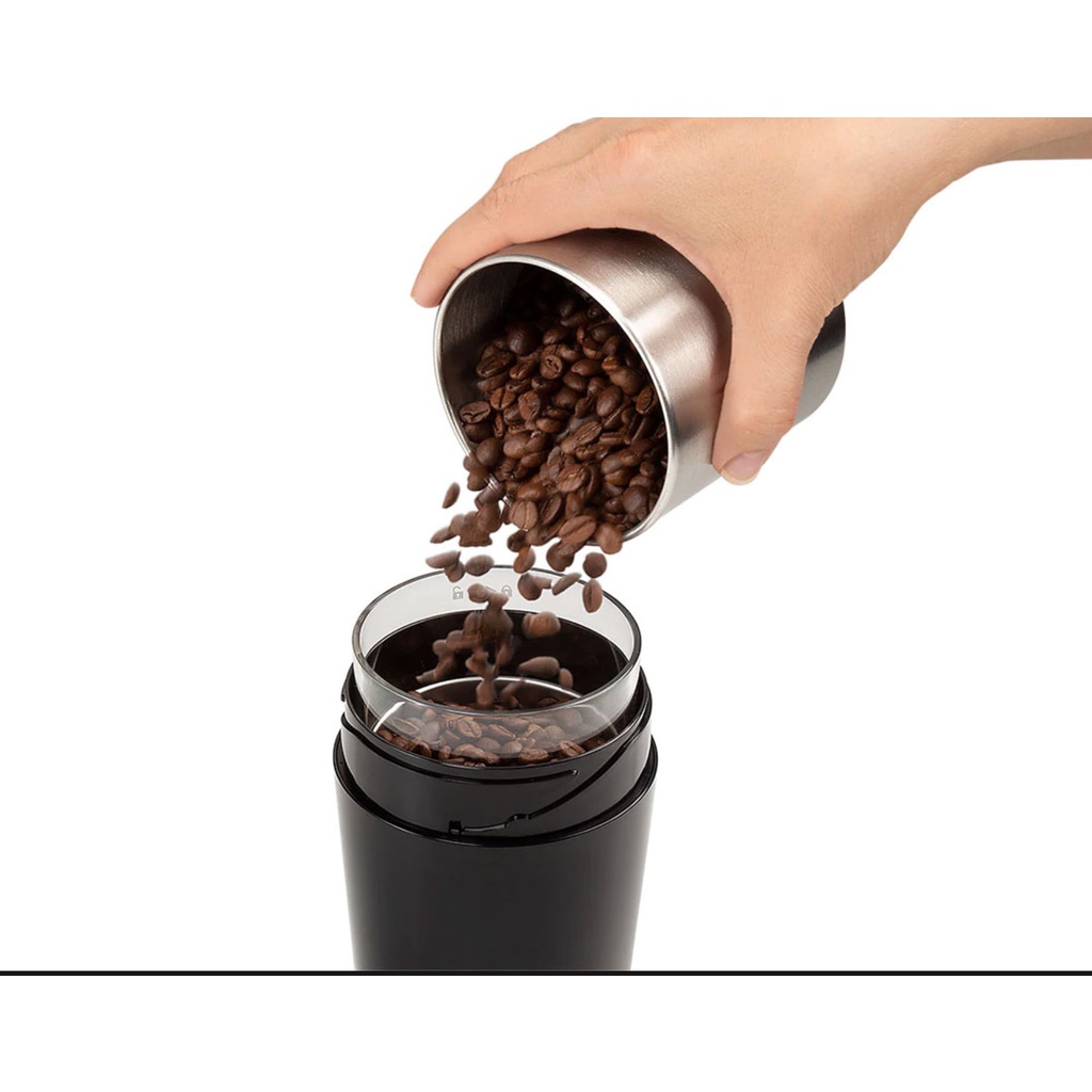 Máy xay cà phê mini KG200 thiết kế lưỡi dao bằng thép không gỉ cùng hệ thống “Đẩy - để xay” giúp cà phê bột thành phẩm đạt được độ mịn hoàn hảo.