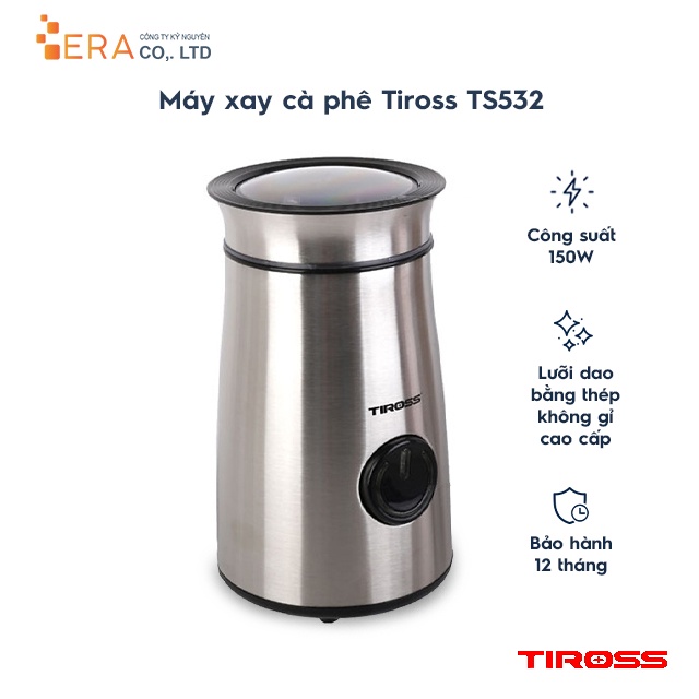- Máy Xay Cà Phê Tiross TS532 150W có vỏ bọc inox siêu bền, được thiết kế hiện đại, nhỏ gọn và dễ dàng sử dụng, có lưỡi dao được làm bằng thép không gỉ cao cấp cùng động cơ mạnh mẽ, giúp bạn xay mịn hạt cà phê một cách nhanh chóng mà vẫn đảm bảo giữ được hương vị và chất lượng của thực phẩm.
