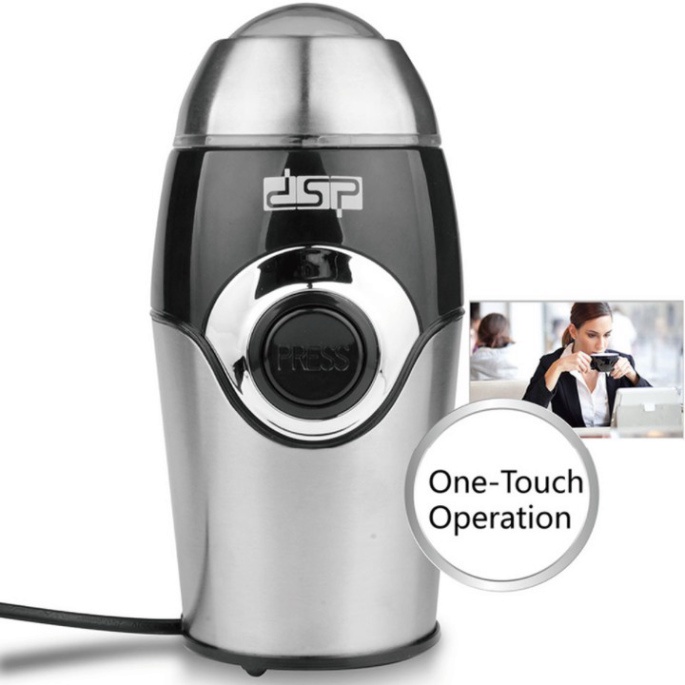 - Máy xay cà phê DSP KA3001 có vỏ bọc inox siêu bền, được thiết kế hiện đại, nhỏ gọn và dễ dàng sử dụng, có lưỡi dao được làm bằng thép không gỉ cao cấp cùng động cơ 200W mạnh mẽ, giúp bạn xay mịn hạt cà phê một cách nhanh chóng mà vẫn đảm bảo giữ được hương vị và chất lượng của thực phẩm.