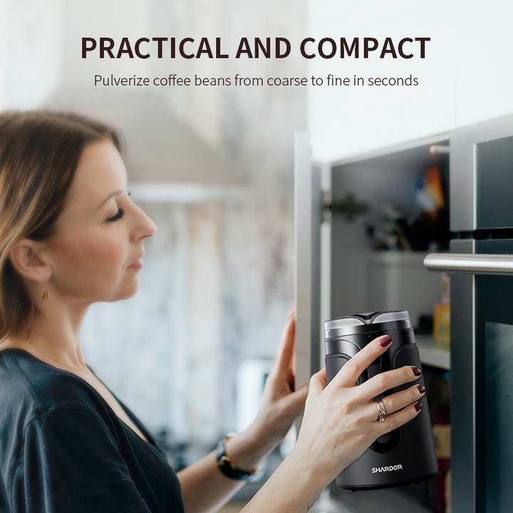 ▶ Máy xay cà phê Shardor CG515B có vỏ bọc nhựa ABS cao cấp, được thiết kế hiện đại, nhỏ gọn và dễ dàng sử dụng, có lưỡi dao được làm bằng thép không gỉ cao cấp cùng động cơ 150W mạnh mẽ, giúp bạn xay mịn hạt cà phê hay các loại hạt ngũ cốc một cách nhanh chóng mà vẫn đảm bảo giữ được hương vị và chất lượng của thực phẩm.