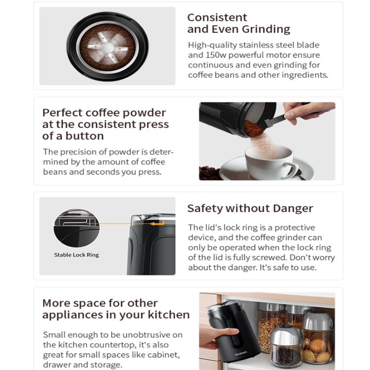 Thiết Bị Điện Gia Dụng > Đồ gia dụng nhà bếp > Máy pha cà phê & Phụ kiện || Máy xay các loại hạt ngũ cốc và cà phê, công suất 150W. Thương hiệu cao cấp Shardor - CG515B (Bảo hành: 1 NĂM)Còn hàng