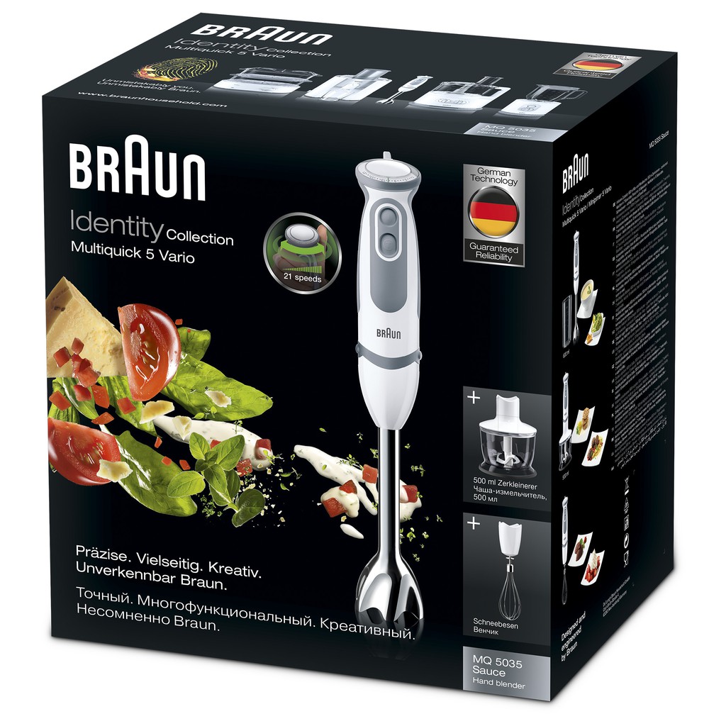 Máy xay cầm tay Braun MQ5235 Sauce Vario 1000W 500ml được sản xuất theo công nghệ tiên tiến của Đức, đảm bảo tính thẩm mỹ cao và giá trị sử dụng lâu dài. Sản phẩm không những giúp chuẩn bị bữa ăn chính và các thức uống tráng miệng mát lạnh cho gia đình mà còn góp phần mang đến phong cách sang trọng, hiện đại cho không gian bếp nhà bạn.