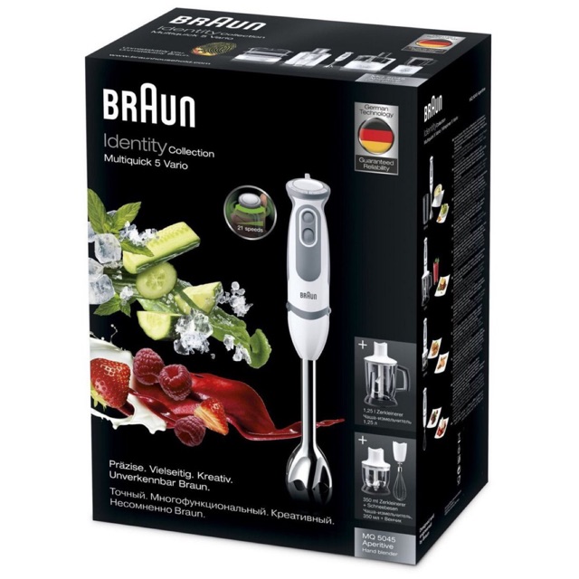 Máy xay cầm tay Braun MQ 5045 với nhiều tính năng nổi bật luôn sẵn sàng phụ các bà nội trợ sáng tạo ra nhiều món ăn hấp dẫn hàng ngày cho gia đình. Nhất là các bé đến tuổi ăn dặm, hệ tiêu hóa còn non yếu thì thức ăn càng phải được xay nhuyễn mịn mà vẫn giữ được nguyên vẹn chất dinh dưỡng.1. Thiết kế sang trọng, tiện lợi - Đặc điểm nổi bật Máy xay cầm tay Braun MQ 5245 Sauce Vario