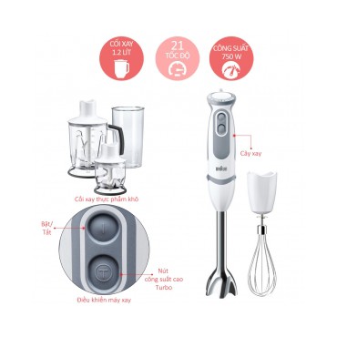 Giới thiệu Máy xay cầm tay Braun MQ5245 Sản xuất 100% tại Châu Âu, chống văng độc quyền, xay nhanh,xay được đá, xay thức ăn dặm