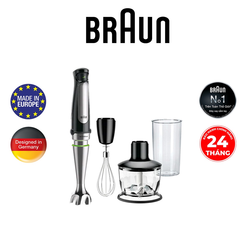 Máy xay cầm tay Braun MQ7035 Sản xuất 100% tại Châu Âu Số 1 thế giới, Công suất 1000w, chống văng độc quyền.