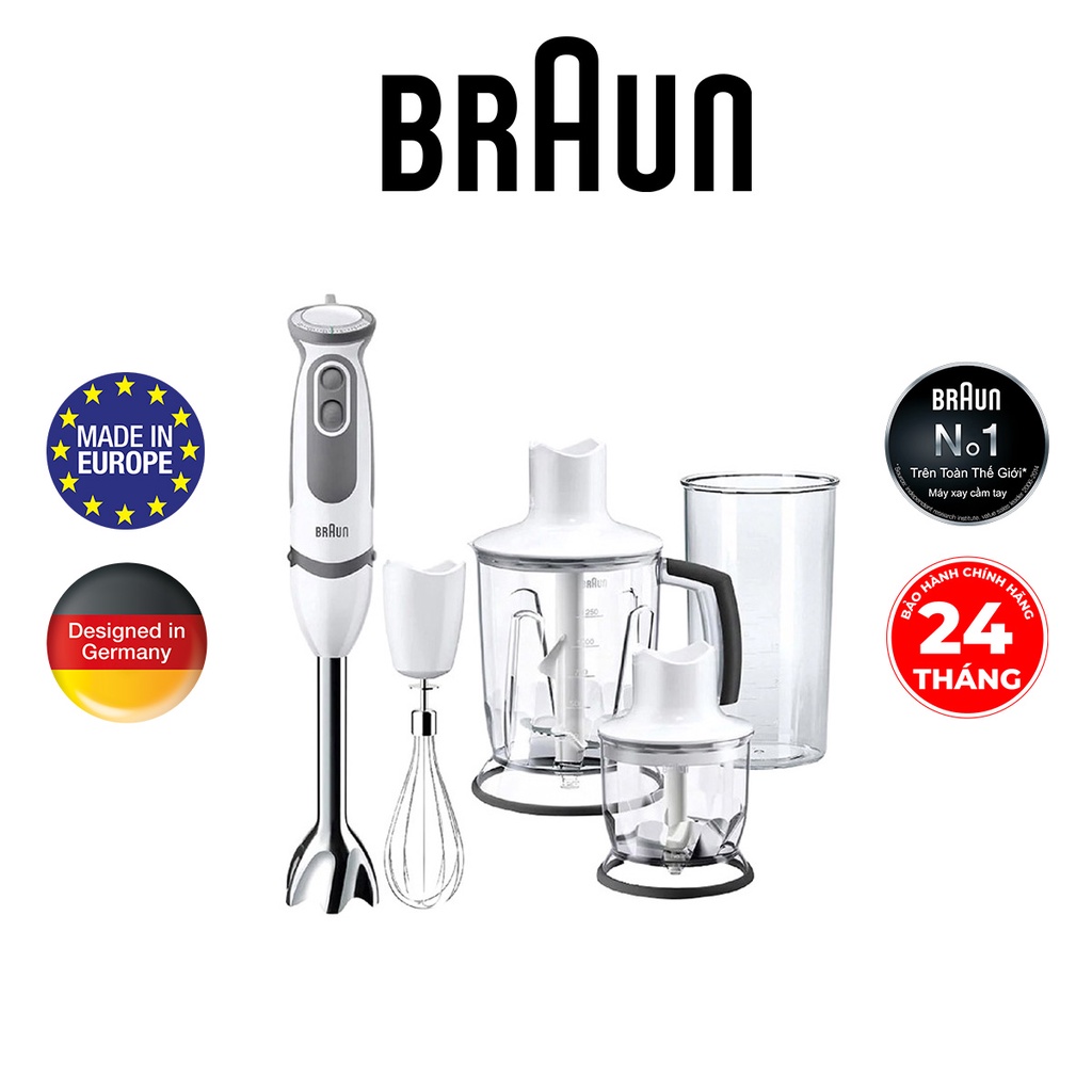 Thiết Bị Điện Gia Dụng > Đồ gia dụng nhà bếp > Máy ép, Xay sinh tố & Máy làm sữa đậu nành || Máy xay cầm tay Braun Sản xuất 100% tại Châu Âu Số 1 thế giới, Công suất 1000w, chống văng độc quyền, bảo hành 24 thangCòn hàng