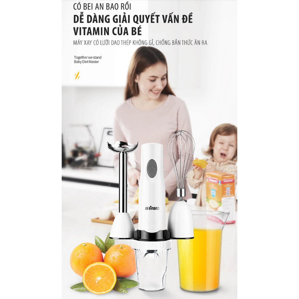 - Chức năng : Thức ăn dặm, xay thịt, nước ép trái cây, đánh trứng, làm mousse, sữa lắc...