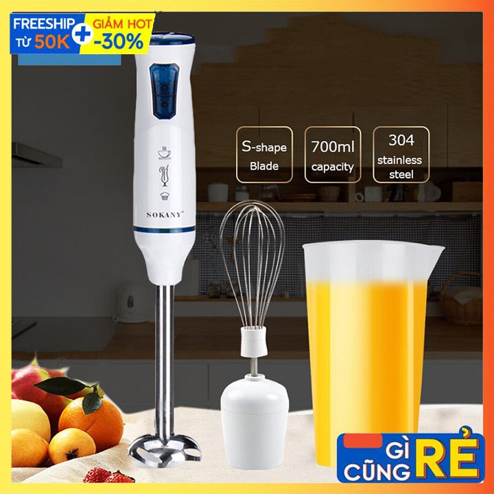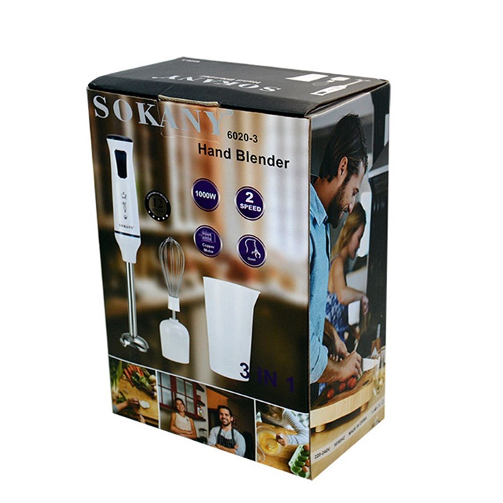 ⛵ - Máy xay sinh tố SK6020 SOKANY 1000W thiết kế cầm tay gọn nhẹ, sử dụng linh hoạt trong không gian bếp. Máy sử dụng xay sinh tố, cháo súp cho bé, xay thịt, xay các loại hạt, trộn thực phẩm, đánh trứng... phục vụ tích cực trong gian bếp gia đình.