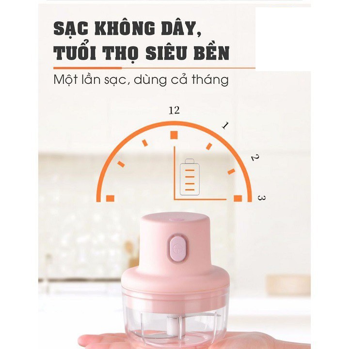 Máy Xay Mini Sạc Điện, Xay Thịt Ớt Hành Tỏi Rau Củ Quả Cầm Tay Siêu Tiện Lợi