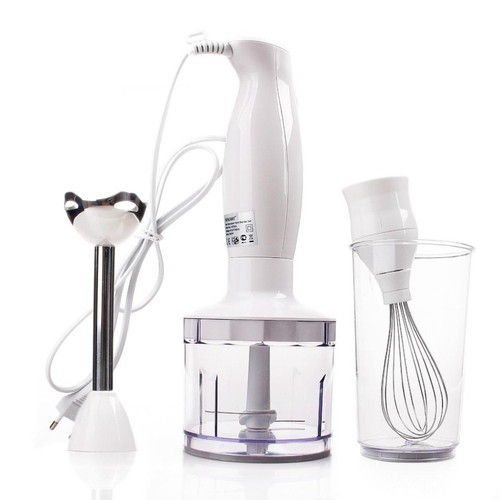 Bộ sản phẩm gồm có: 1 thân máy, 1 đầu đánh trứng, 1 đầu xay nhuyễn, 1 cối xay khô, 1 cốc nhựa 600ml.Thiết kế gọn nhẹ, tiện sử dụng, dễ di chuyển (có thể xay cháo trực tiếp trong nồi hoặc bát…), dễ vệ sinh hơn máy xay sinh tố thông thường