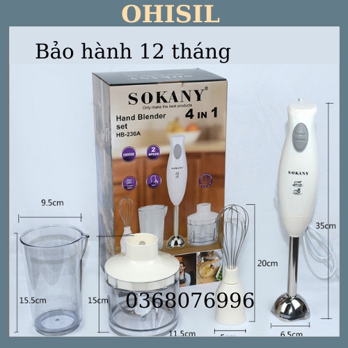 Tên sản phẩm :Máy Xay Cầm Tay Đa Năng Sokany 4IN1 HB-230A Chính Hãng bảo hành 1 năm phân phối độc quyền của OHISILKHI NHẬN HÀNGCÁC BẠN BẢO NHÂN VIÊN GIAO HÀNG GỌI CHO SHOP ĐỂ SHOP CHO PHEP XEM HÀNG THẬT NHÉ.