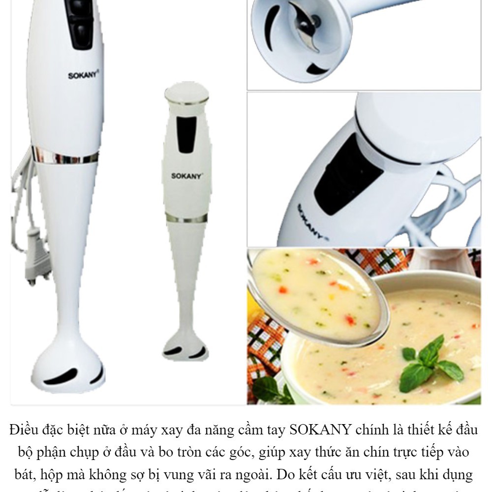 – Máy xay cầm tay đa năng Sokany HB250/ 5015: Máy xay cầm tay được biết đến như là một công cụ đắc lực để hỗ trợ các bà nội trợ trong việc xay các loại thức ăn như cá, thịt, đậu hay các thực phẩm khác.