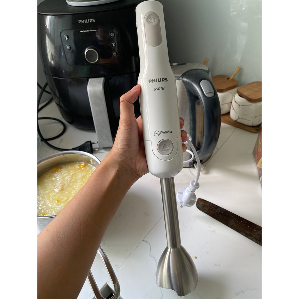 ☛ Máy xay cầm tay Philips được trang bị que đánh kem dùng để đánh kem, xốt mayonnaise, bột nhão làm bánh kếp và nhiều món nữa.