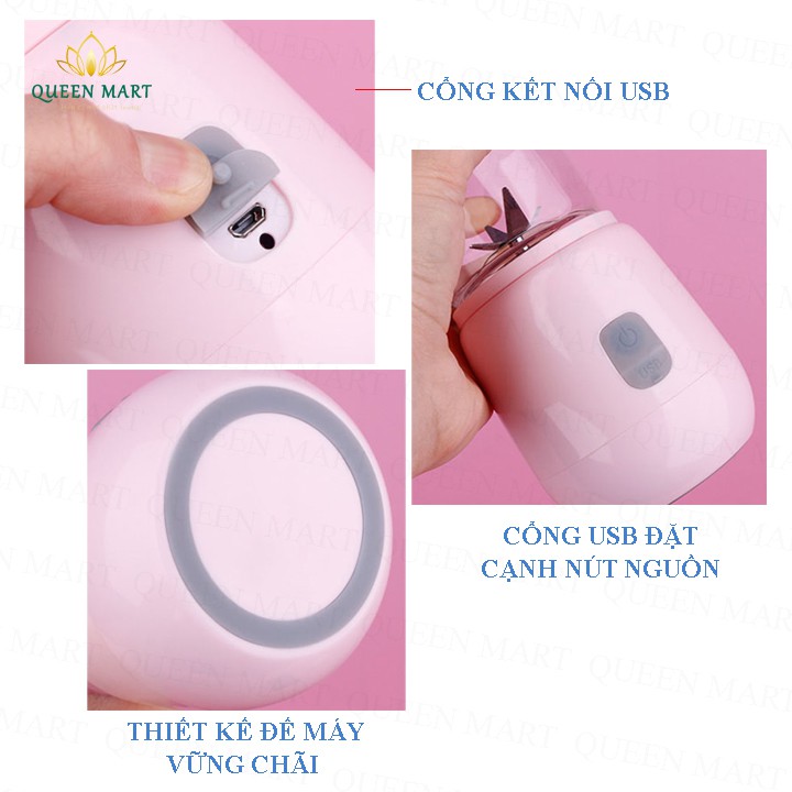 =>> Đặc biệt, MÁY XAY SINH TỐ mini sạc pin thuận tiện khi mang đi du lịch mà không cần ổ cắm điện