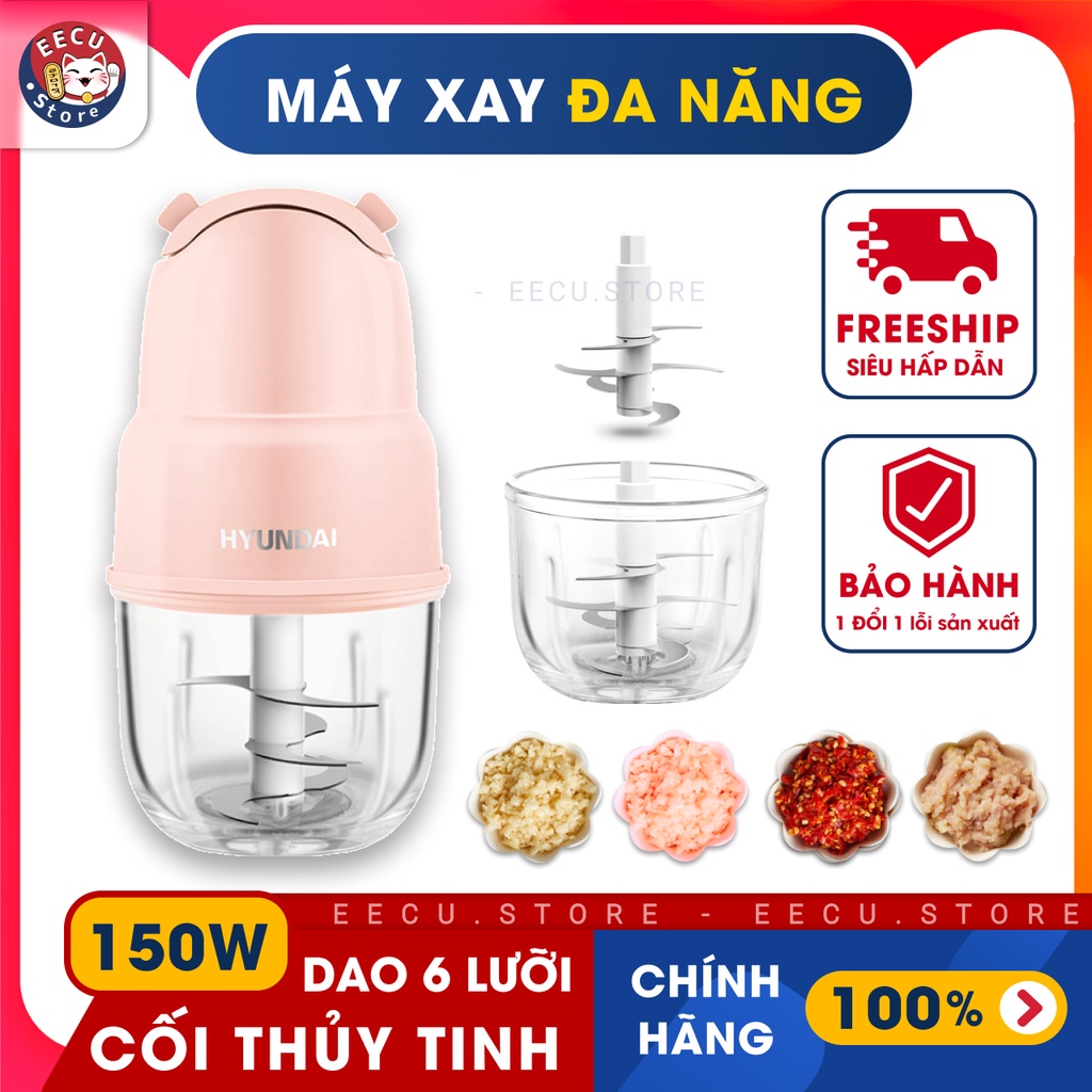 Giới thiệu Máy xay cầm tay, máy xay đa năng chính hãng HYUNDAI, phiên bản 6 lưỡi dao (xay thịt, rau củ quả, sinh tố) - Eecu store