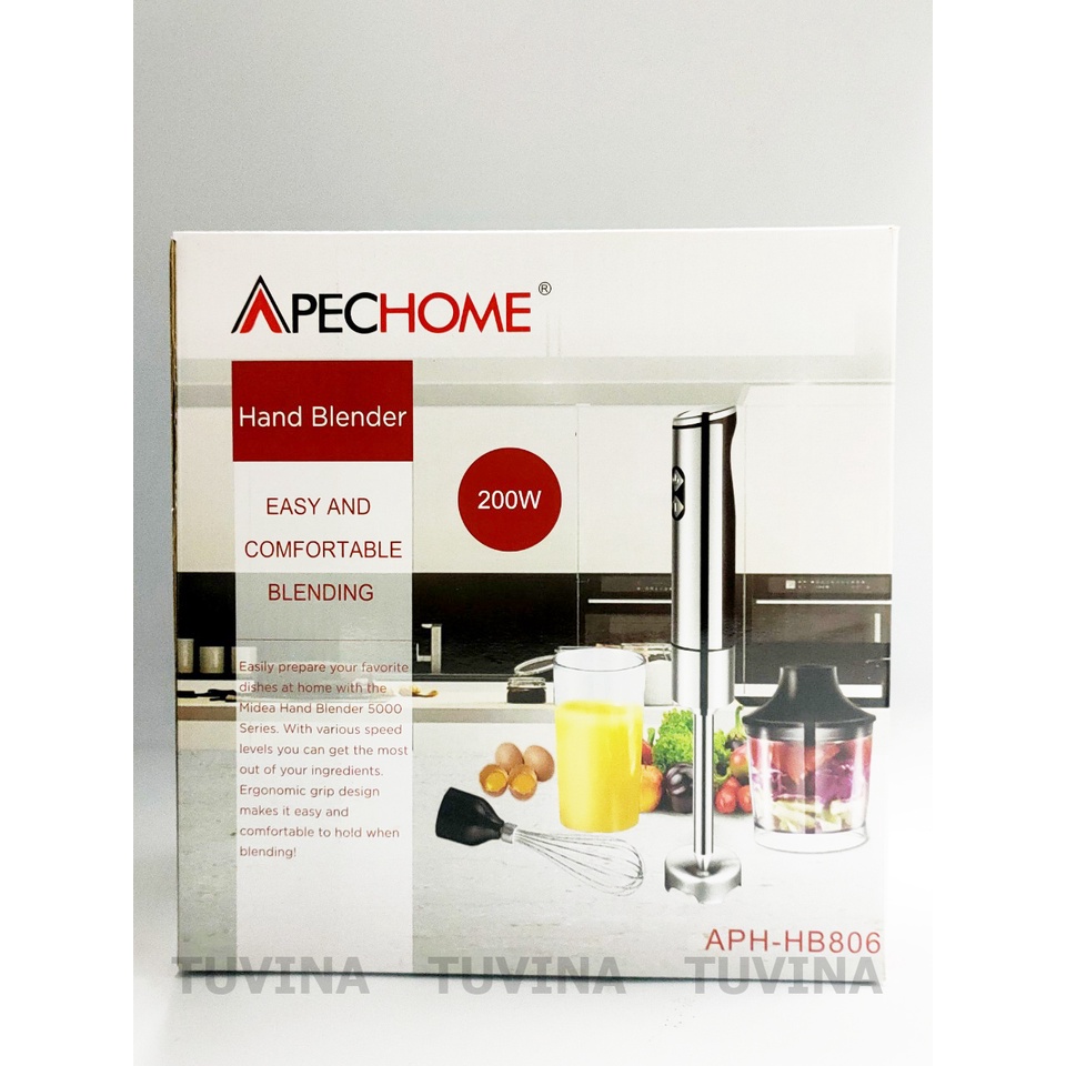 Giới thiệu Máy Xay Cầm Tay, Máy Xay Sinh Tố Cầm Tay Đa Năng Apechome APH-HB806 - Thân Inox - Hàng Chính Hãng (Bảo Hành 12 Tháng)