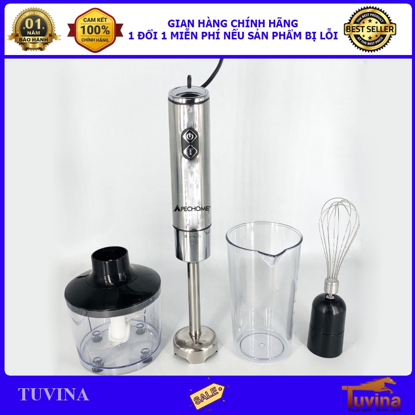 Thiết Bị Điện Gia Dụng > Đồ gia dụng nhà bếp > Máy trộn thực phẩm || Máy Xay Cầm Tay, Máy Xay Sinh Tố Cầm Tay Đa Năng Apechome APH-HB806 - Thân Inox - Hàng Chính Hãng (Bảo Hành 12 Tháng)Còn hàng