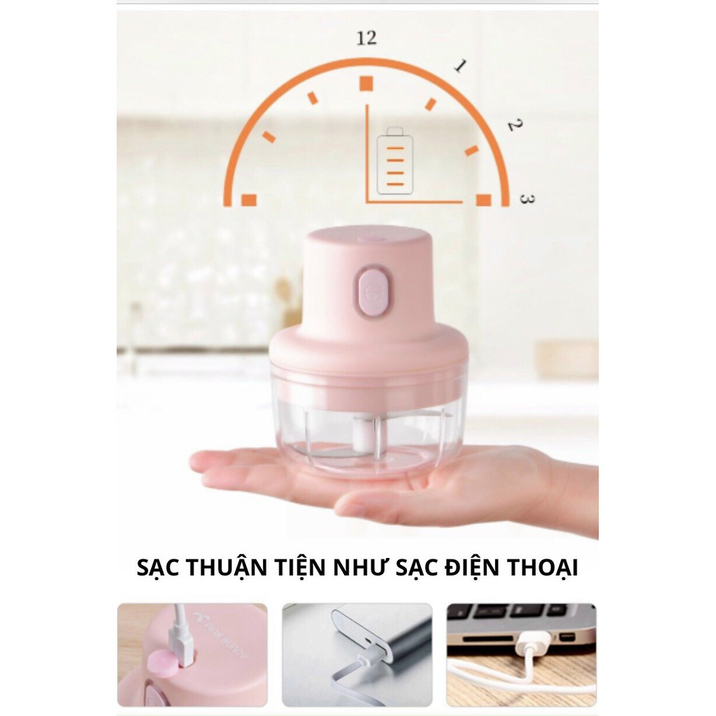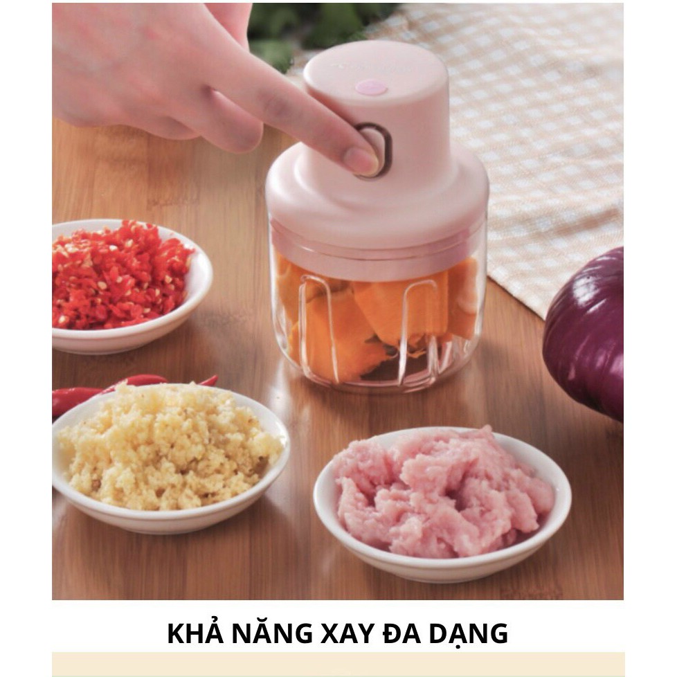 Máy xay cầm tay mini đa năng sạc pin cao cấp xay tỏi ớt, hành, rau củ quả dung tích 250ml