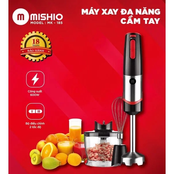 Thiết Bị Điện Gia Dụng > Đồ gia dụng nhà bếp > Máy ép, Xay sinh tố & Máy làm sữa đậu nành || [Mã ELHA22 giảm 6% đơn 300K] Bộ máy xay cầm tay Mishio MK185Còn hàng