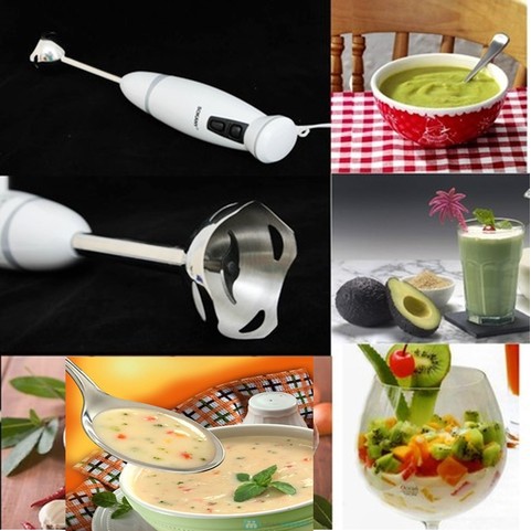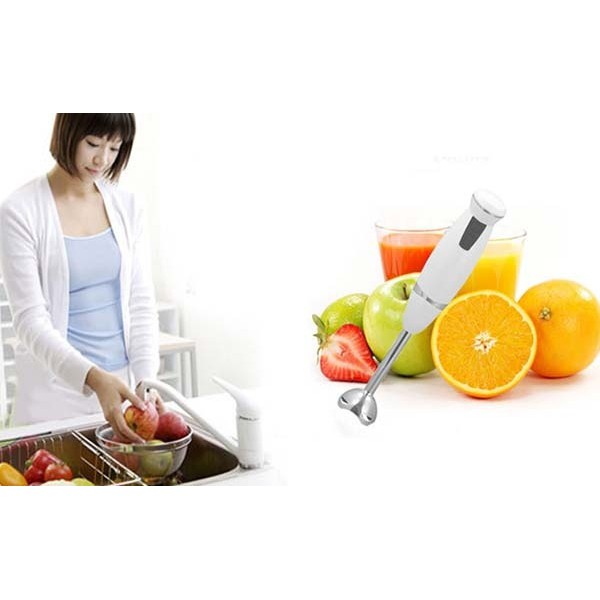 Máy có đầu dao bằng inox bền, công suất 300W, điện áp 220v – 50Hz, kích thước 35x7cm có thể chế biến được nhiều món thức ăn khác nhau.