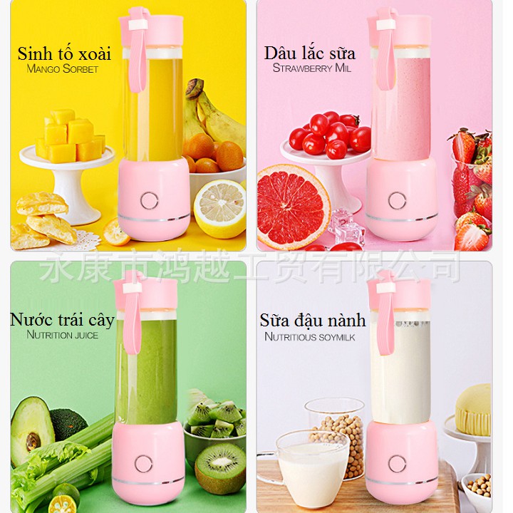 Máy xay sinh tố mini 2 in1 Sạc điện về 2 màu hồng và trắng