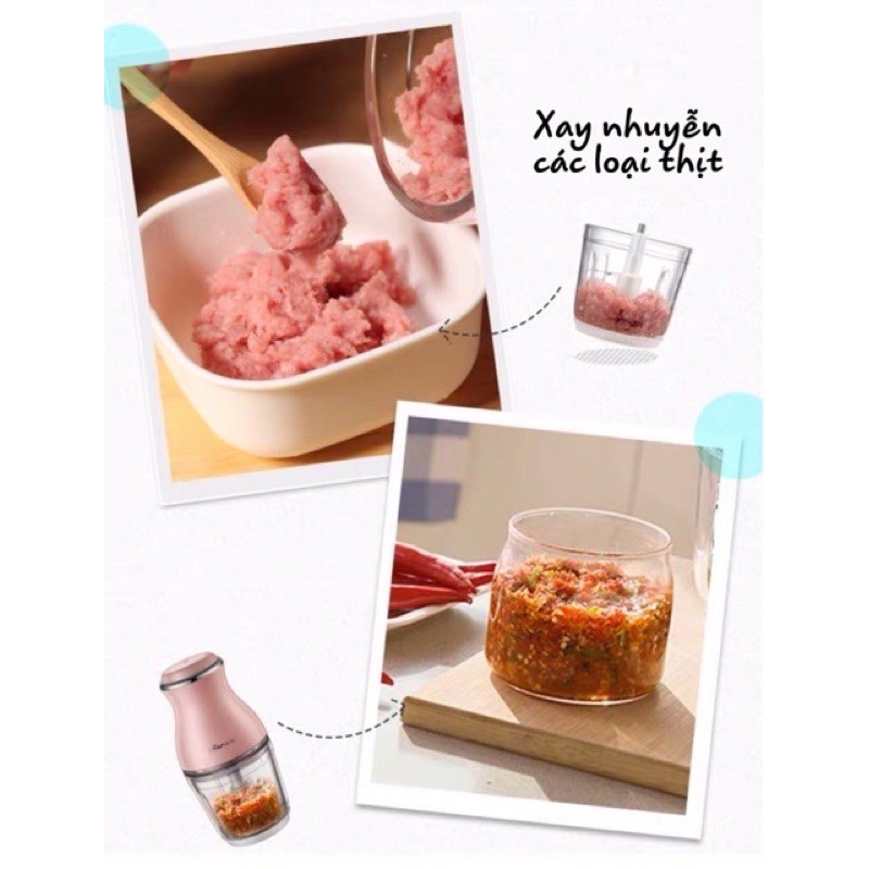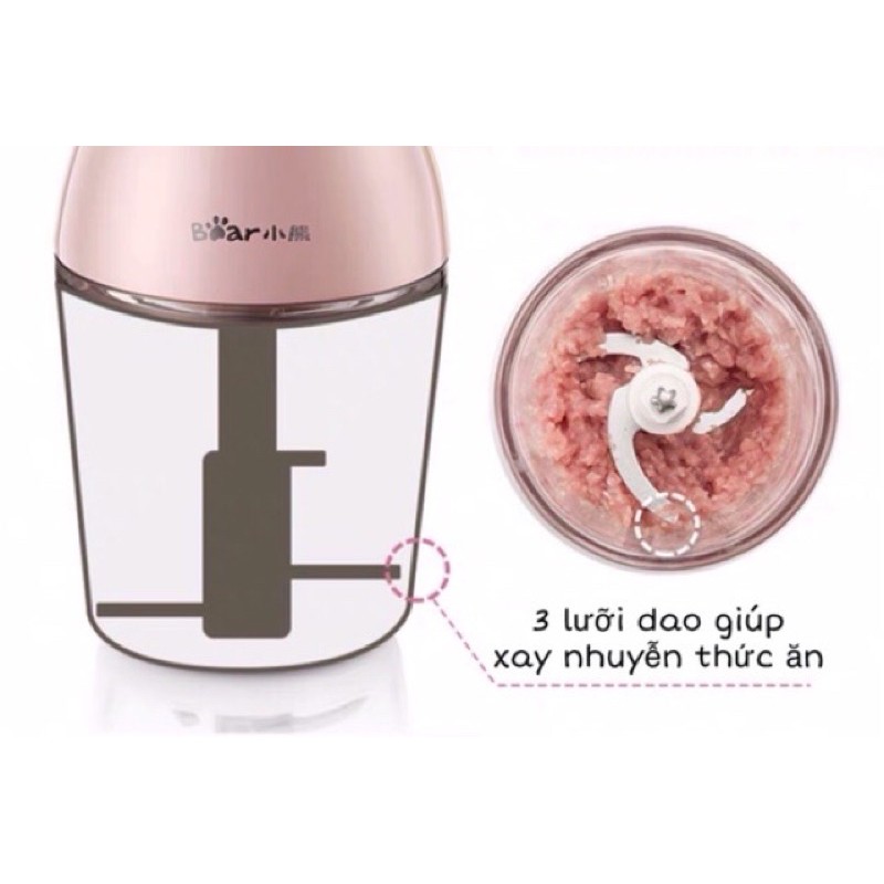 Máy xay đa năng cao cấp BearThiết kế thông minh với 3 lưỡi dao, lực xoay mạnh, dễ dàng xay nhuyễn thức ăn, chuẩn bị đồ ăn cho bé ăn dặm. Có thể xay được các loại thịt, rau củ quả, gia vị hoặc làm sinh tố cho bé