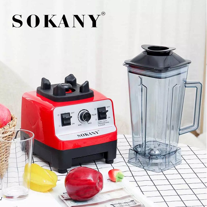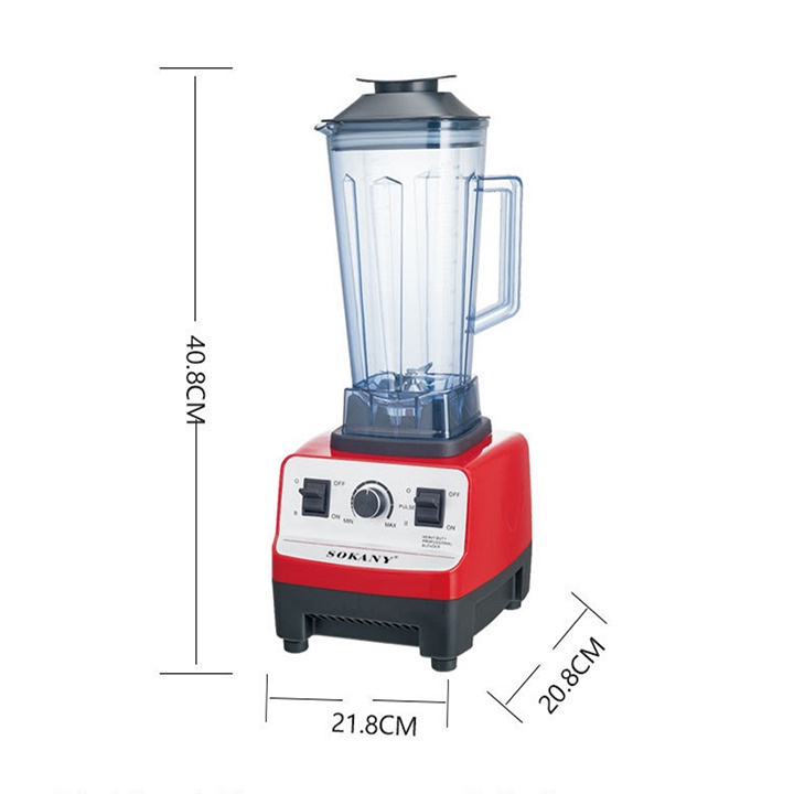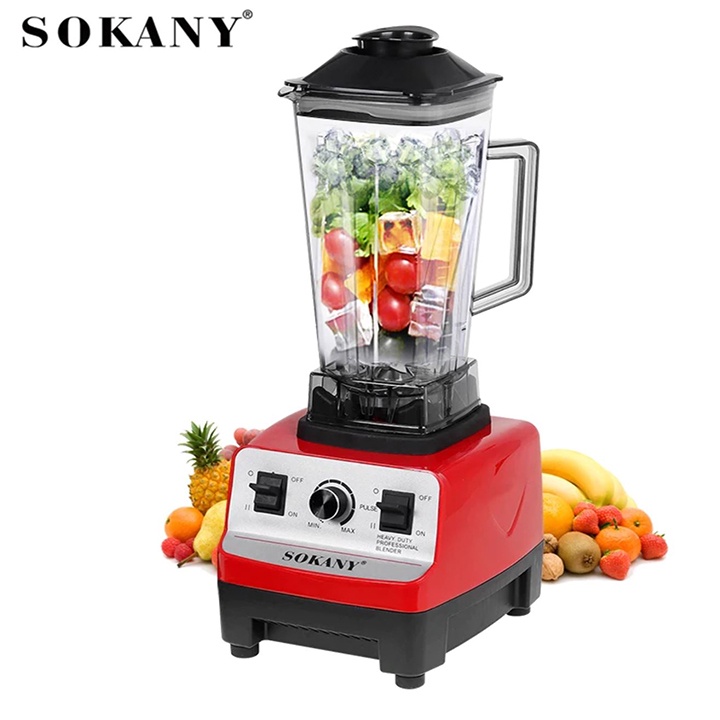 Máy xay sinh tố SOKANY phục vụ cho công việc xay, nghiền hoa quả, ngũ cốc… tại các quán sinh tố, quán cafe, quán kinh doanh sữa đậu nành, sữa ngô, sữa mè đen… hoặc có thể sử dụng chiếc máy này để xay bột nghệ, gạo lứt… rất đa năng. Chiếc máy xay sinh tố công suất lớn này được sản xuất với công suất lớn lên tới 4500W nên nó có thể xay, nghiền được nhiều nguyên liệu một cách nhanh chóng, ngoài các nguyên liệu trên thì nó còn có khả năng xay được đá rất hiệu quả.Hình ảnh chi tiết của sản phẩm, đây là đồ dùng không thể thiếu tại quán sinh tố, cafe, quán bar, nhà hàng….