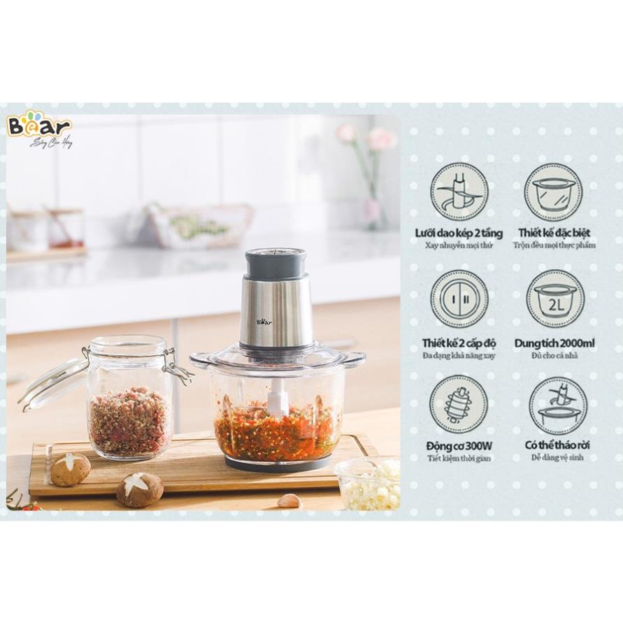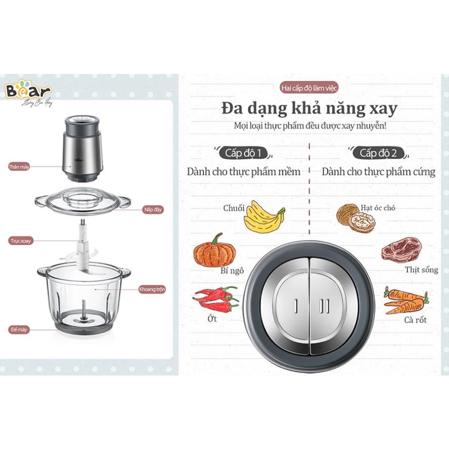 Máy xay đa năng 2L Bear xay sinh tố thịt cá thực phẩm hoa quả gia vị cầm tay tiện lợi Gia dụng Bear Tuli Mart