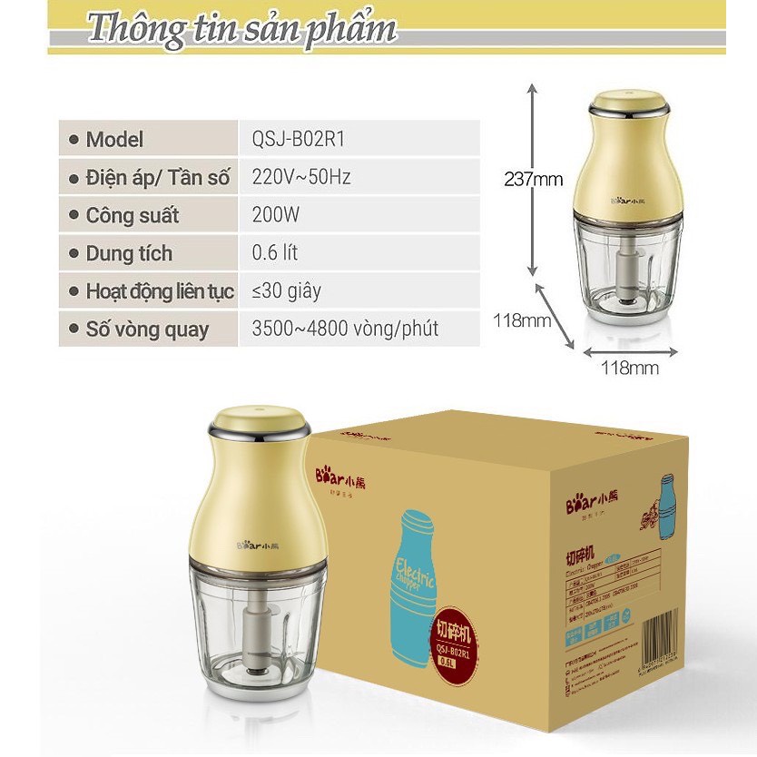 Thiết Bị Điện Gia Dụng > Đồ gia dụng nhà bếp > Máy chế biến thực phẩm & Xay thịt || Máy xay đa năng Bear B02R1, máy xay ăn dặm, thực phẩm nhà bếp - Hàng Nội Địa TrungCòn hàng